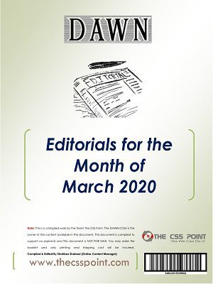 Monthly DAWN Editorials March 2020 – Dawn Editorials is the first E-Booklet produced by the css point team. It is one of the best Current Affairs Source for all CSS Aspirants. DAWN Editorials is published on monthly basis, Its all articles are from purely professionals writers from DAWN. DAWN Newspaper is the owner of the content available in this booklet. You can download online for Free of cost or request for print out. only printing cost will be added. Monthly DAWN Editorials March 2020.